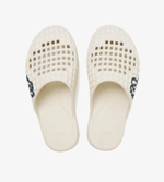 Malbon's Lusso Rosa Slides showcase a classic unisex design in a low-profile silhouette. Water-friendly construction features built-in arch support, textured footbed to reduce friction, antimicrobial treatment, and patented square perforations for breathability.