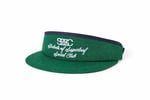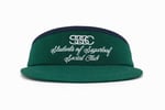 SSC x Students High Crown Visor with comfy terry cloth interior headband. Green color is offset with navy ribbing and navy colored adjustable strap. Made in the USA.